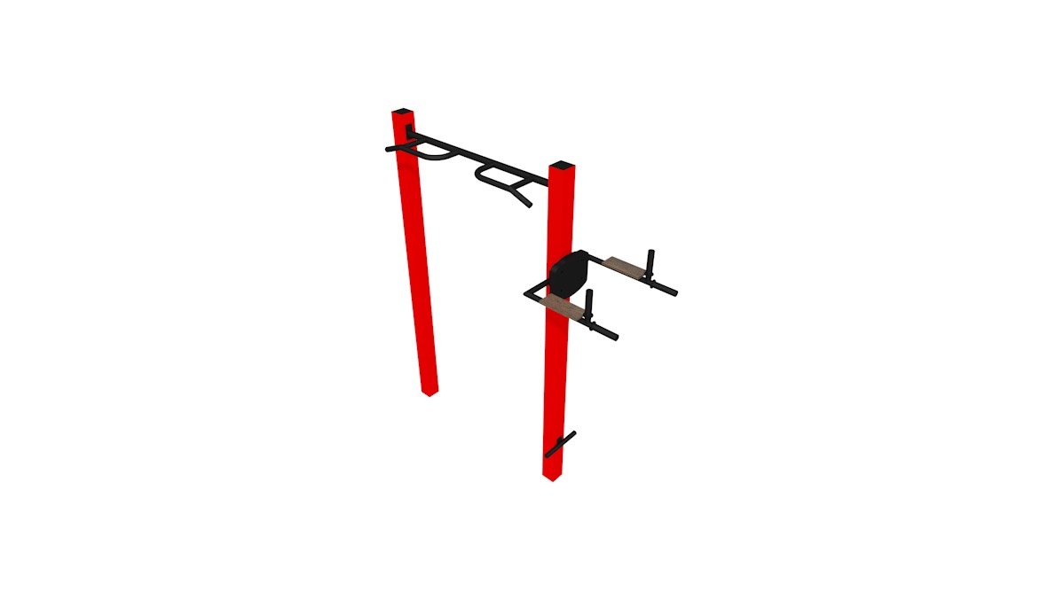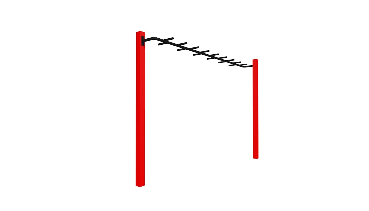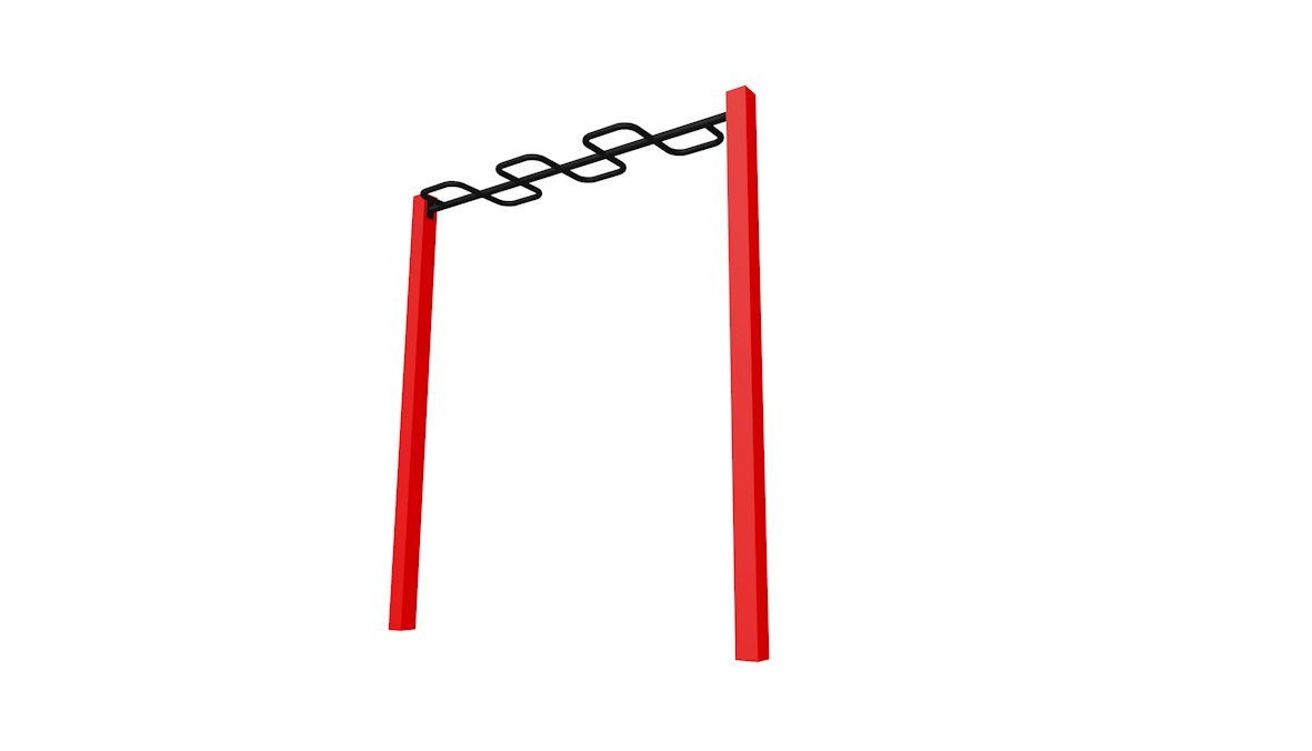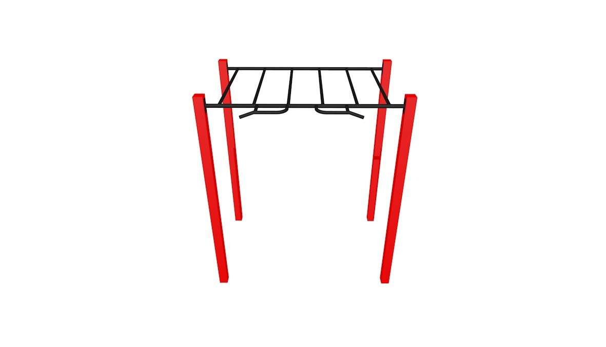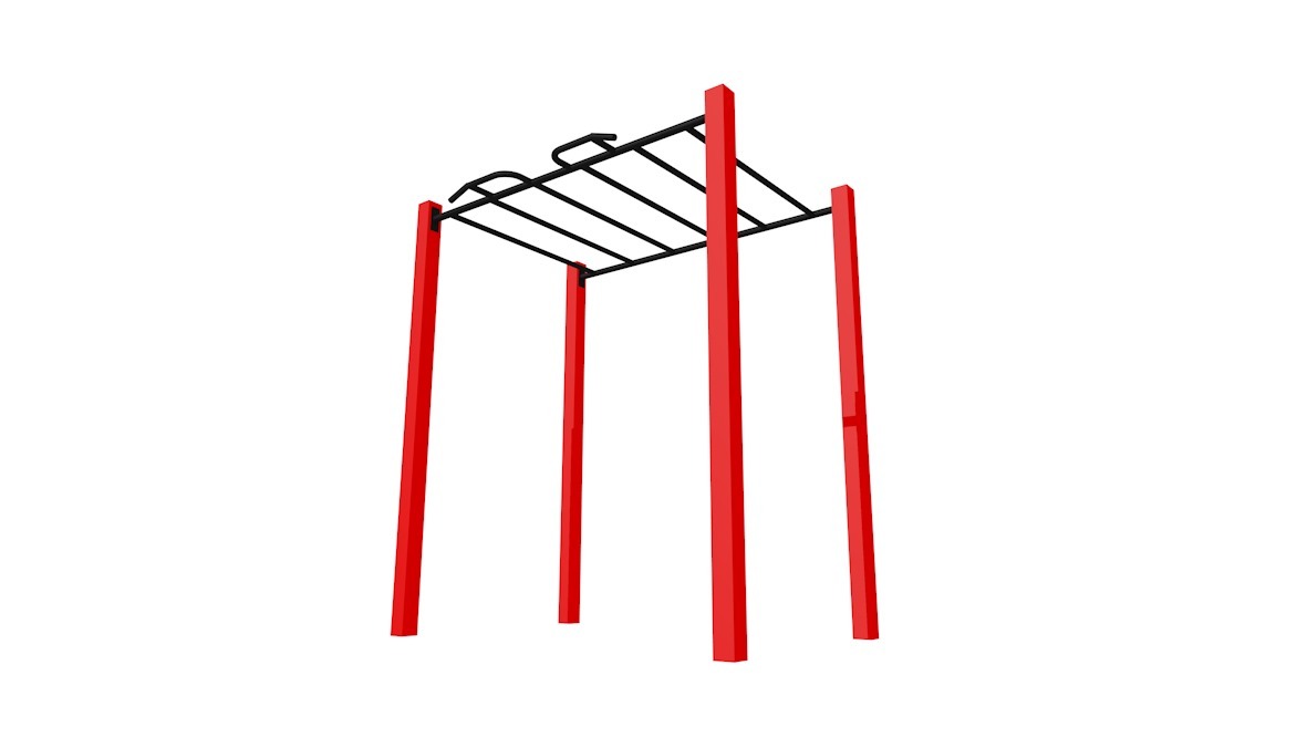 Опорные столбы выполнены из трубы сечением 100х100мм. Все перекладины крепятся болтовым соединением через фланец.